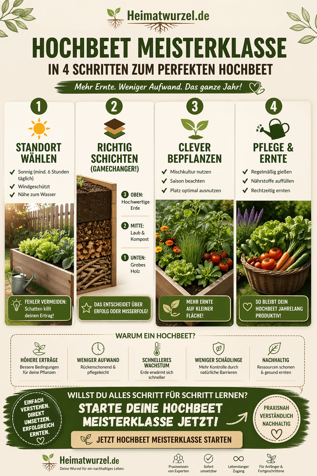 Mit der Hochbeet Meisterklasse vermeidest du typische Fehler und baust dir ein Hochbeet, das: