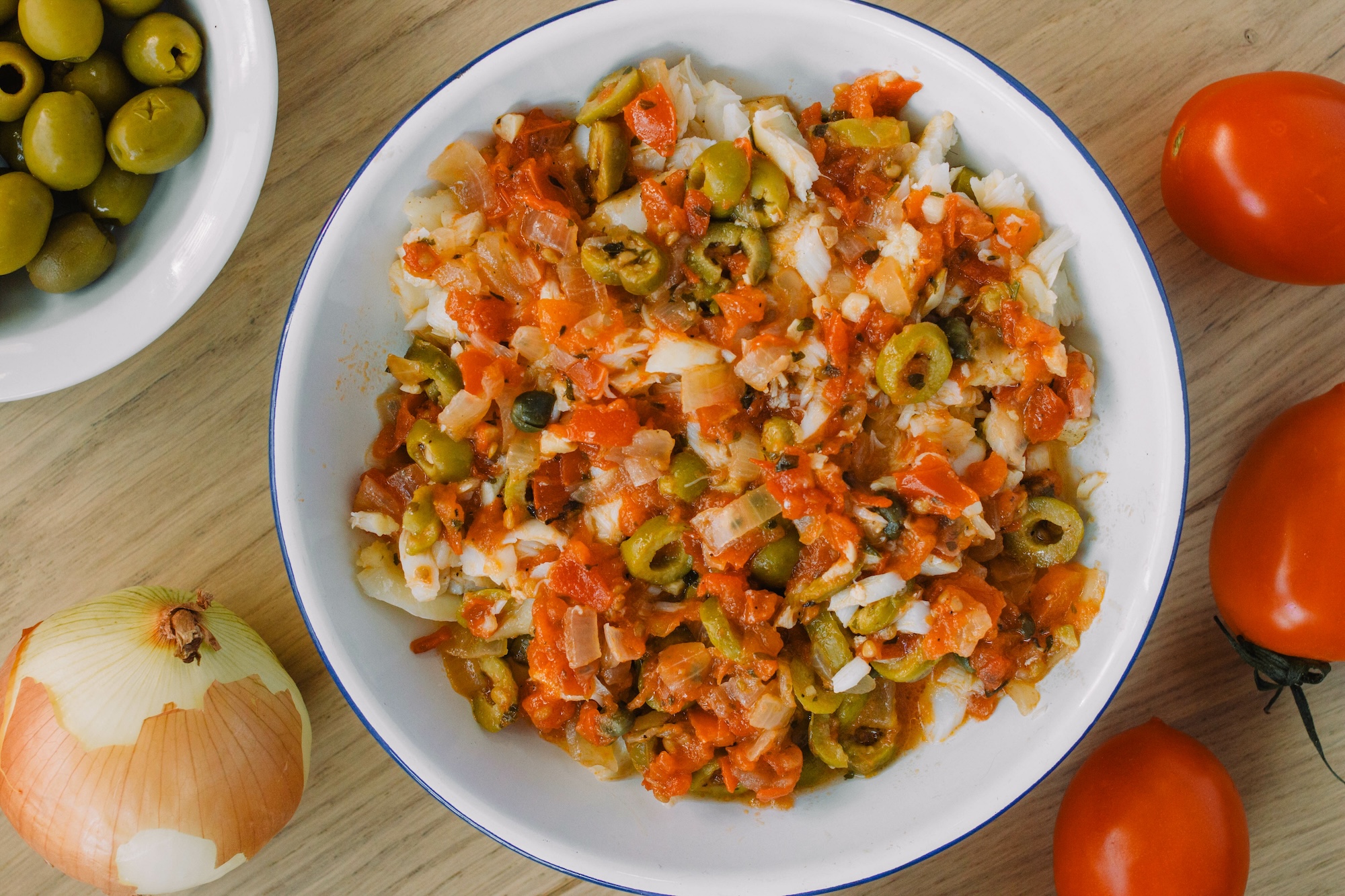 Es wird typischerweise aus getrocknetem und gesalzenem Kabeljau zubereitet, der in einer pikanten Tomatensauce geschmort wird, die oft mit Paprika und Zwiebeln angereichert ist.