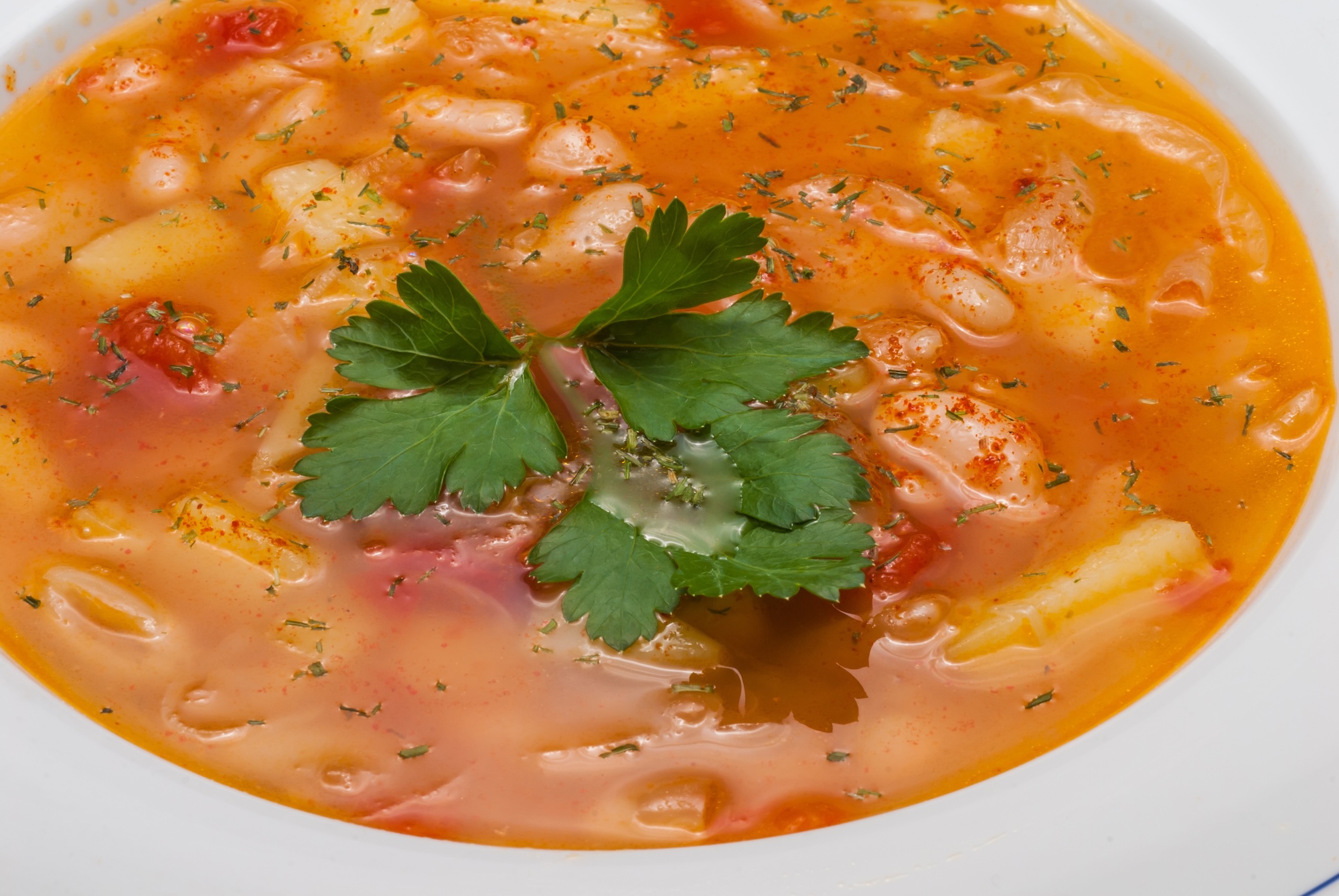 - Gegarte Bohnen und gehackte Petersilie in die Suppe geben.