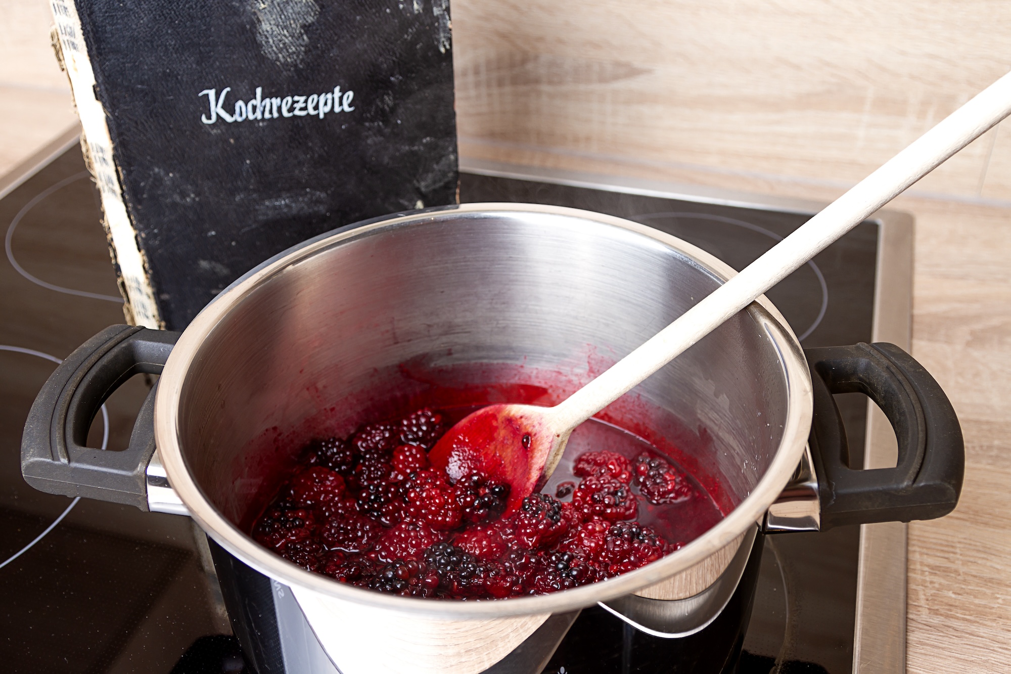 Die Zutatenliste ist überschaubar: frische Brombeeren, Gelierzucker und etwas Geduld.