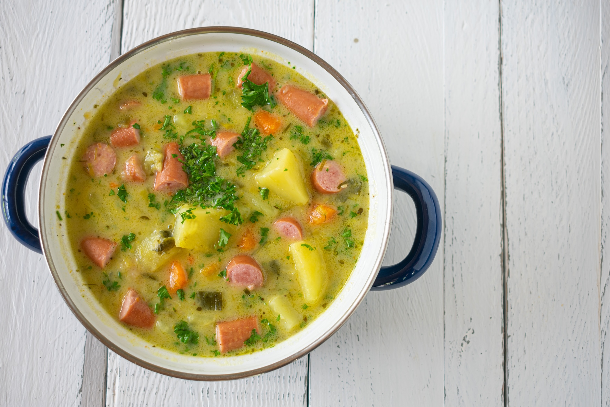 Mit Kartoffeln, Gemüse, Speck und Würstchen lässt sich eine leckere Suppe kochen, die an Omas Rezepte erinnert.