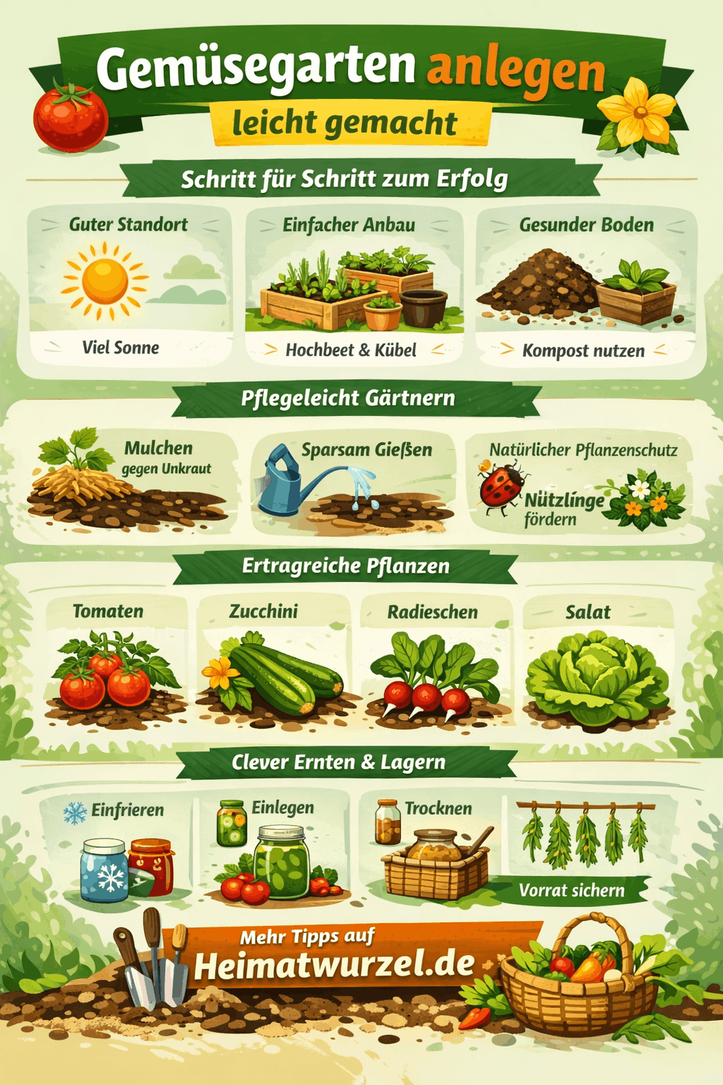 Der Traum vieler Gartenliebhaber ist es, das eigene Gemüse im Garten oder auf dem Balkon zu ernten. Frische Tomaten, knackige Gurken, süße Karotten oder aromatische Kräuter direkt aus dem Garten schmecken einfach besser und sind zudem frei von chemischen Zusätzen. Doch viele scheuen den vermeintlich großen Aufwand, der mit dem Anbau eines Gemüsegartens verbunden ist. Die gute Nachricht: Einen Gemüsegarten anzulegen, muss nicht kompliziert oder zeitintensiv sein.
