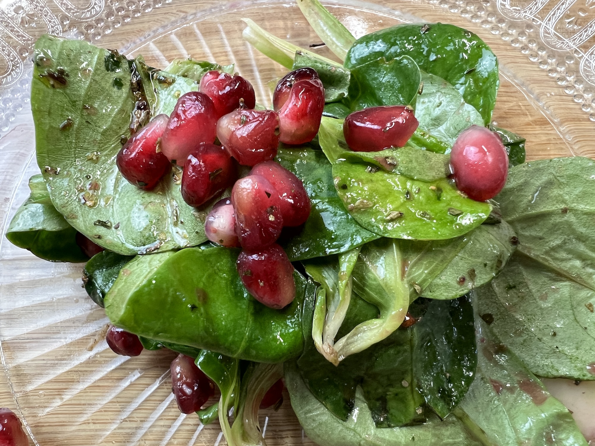 Frische Zutaten für dein Gericht: Feldsalat und Granatapfel