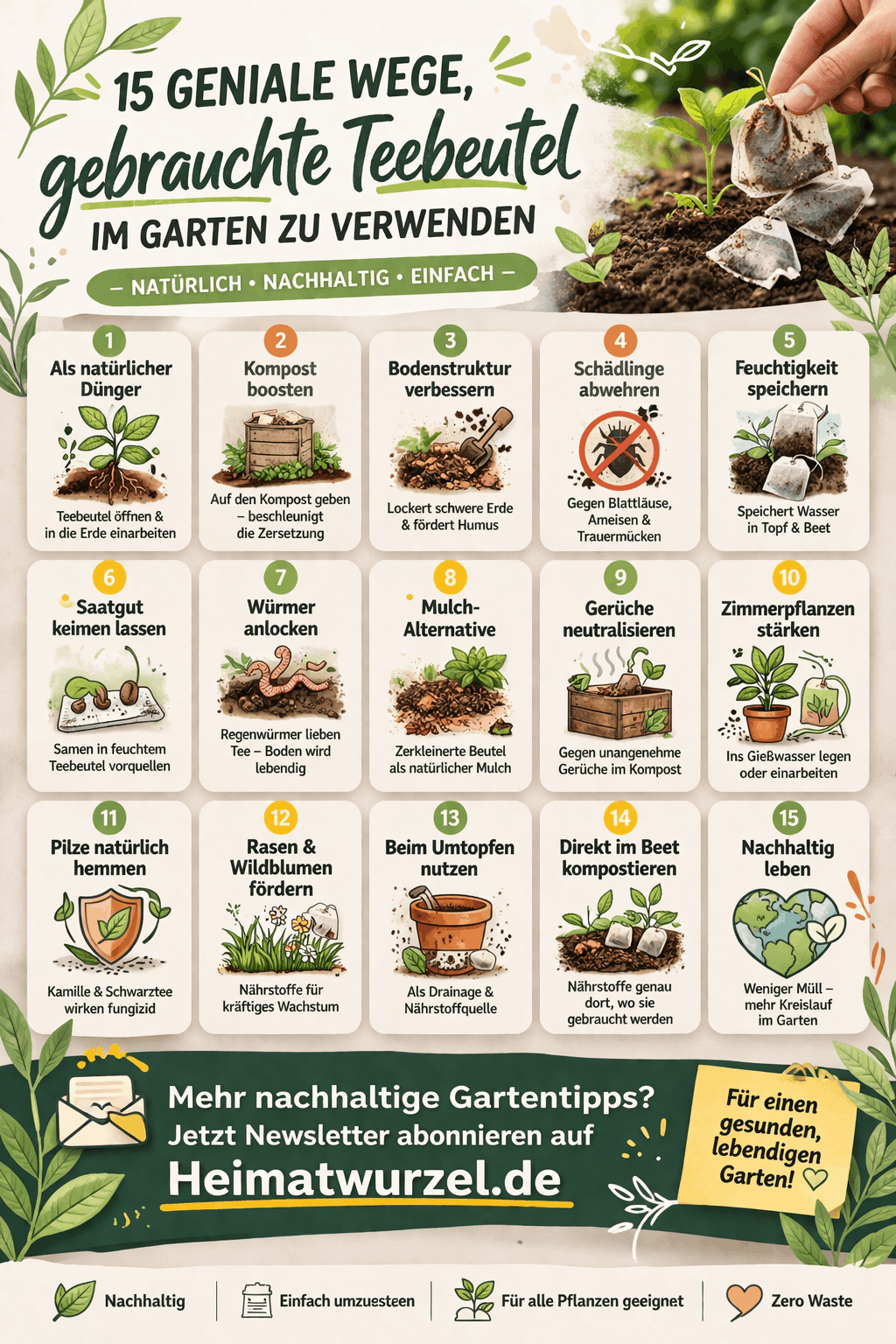 In diesem Ratgeber zeigen wir Ihnen praxisnah, fundiert und wissenschaftlich sinnvoll, wie Sie gebrauchte Teebeutel im Garten einsetzen – von der Kompostierung bis zur natürlichen Schädlingsabwehr.
