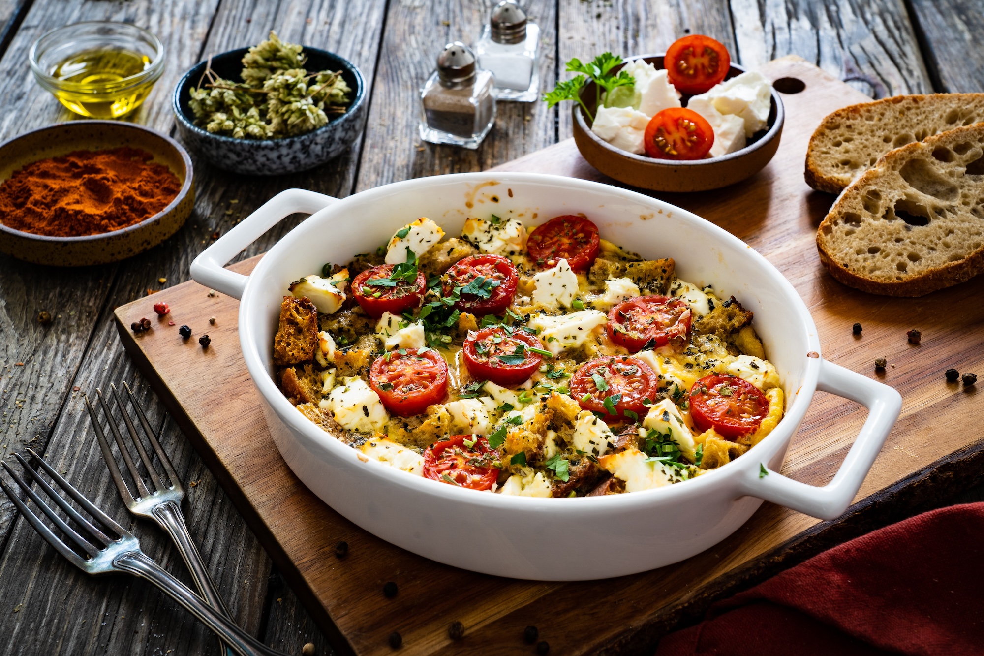 Frisches Gemüse und aromatische Kräuter bilden die Basis dieses herzhaften Auflaufs.