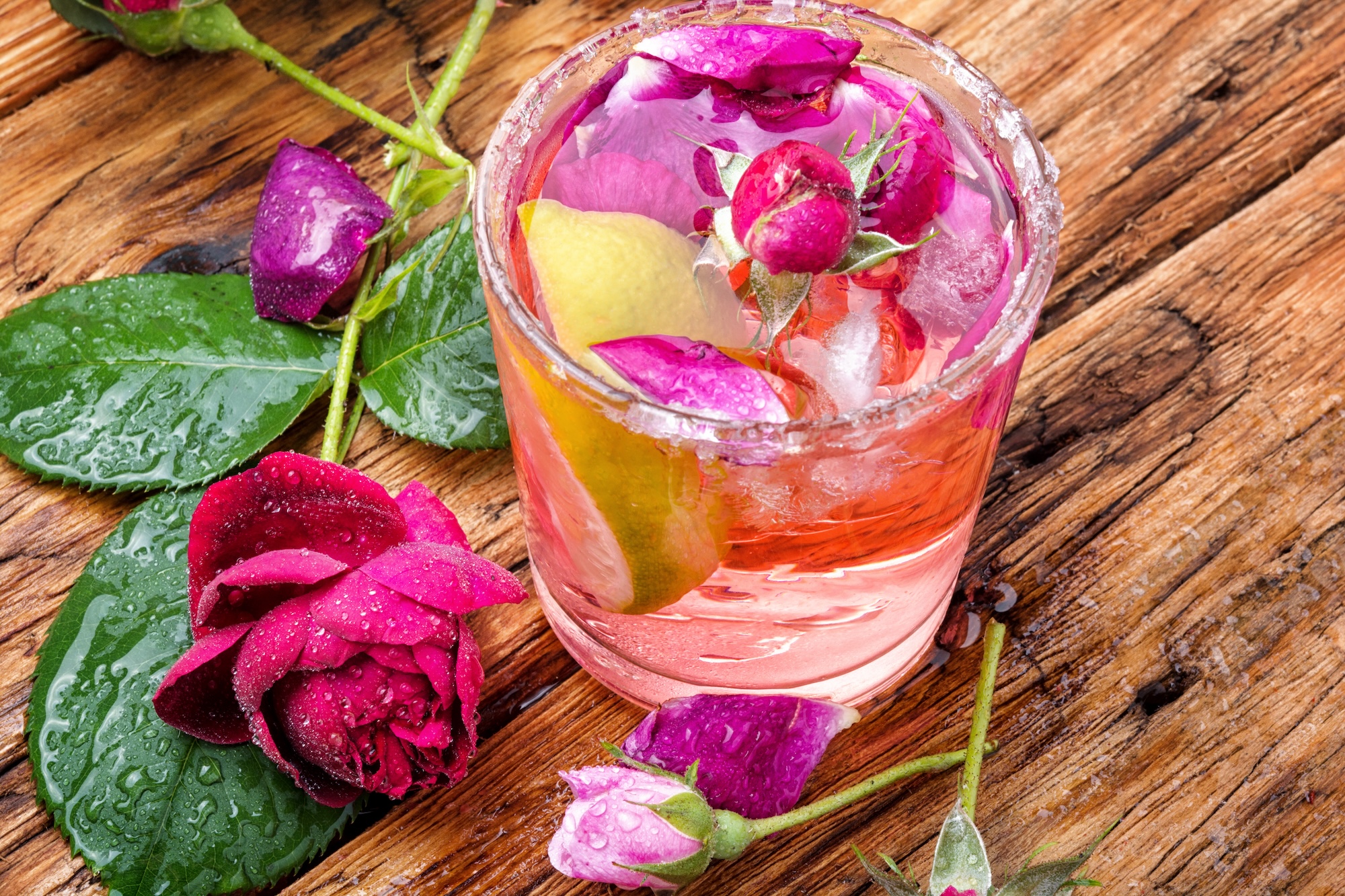 - Rosen: Rosenblätter und Rosenwasser sind klassische Zutaten, die eine zarte Süße und ein unverwechselbares Aroma bieten. Sie passen perfekt zu Tees, Limonaden und Cocktails.
