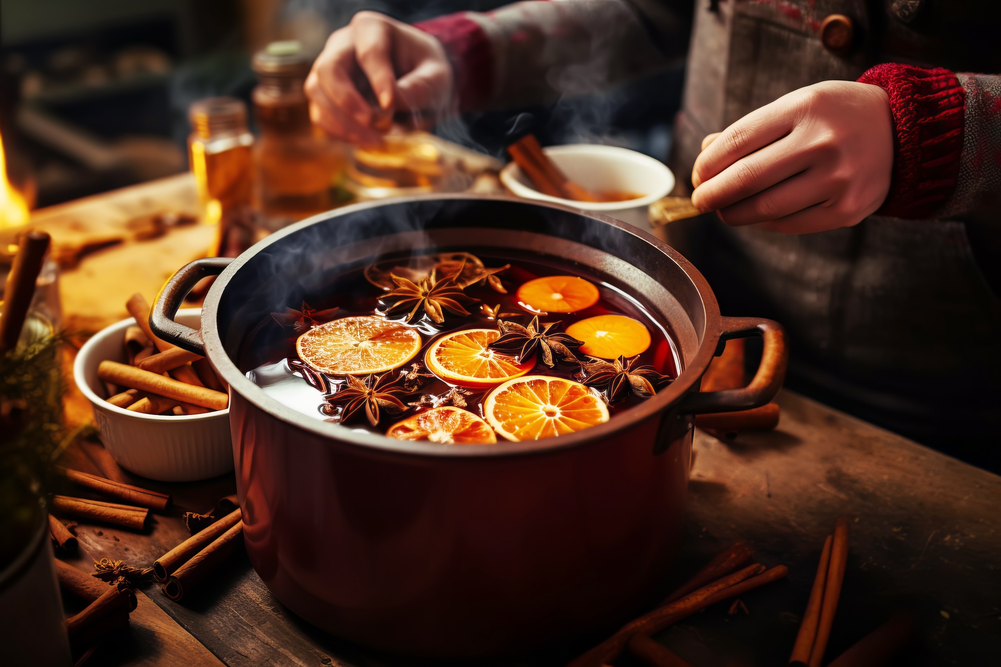 Stellen Sie sicher, dass die Gewürze gut verteilt sind und lassen Sie sie langsam in einem Topf mit dem Wein ziehen. Ein Schuss Likör kann auch eine schöne Ergänzung sein.