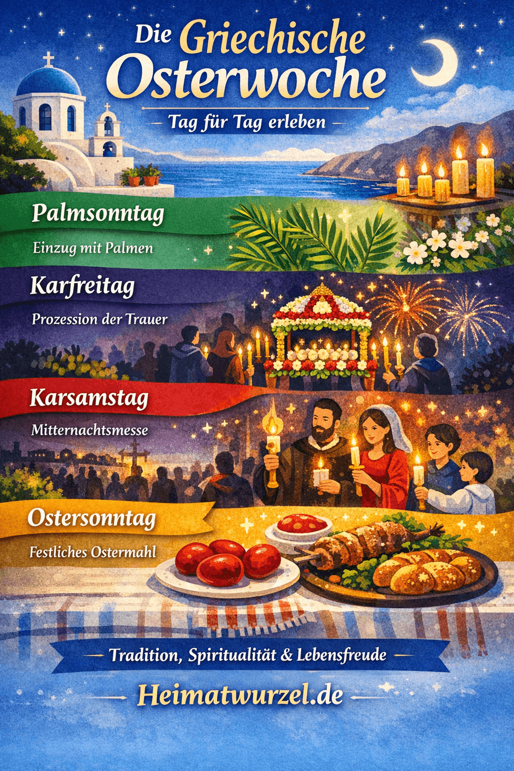 Während viele nur den Ostersonntag kennen, entfaltet sich die eigentliche Magie der griechischen Ostern über mehrere Tage hinweg. Die sogenannte „Große Woche“ ist eine der intensivsten religiösen Zeiten im Jahr und folgt einem klaren Ablauf, der tief in der Tradition der Griechisch-Orthodoxe Kirche verankert ist.