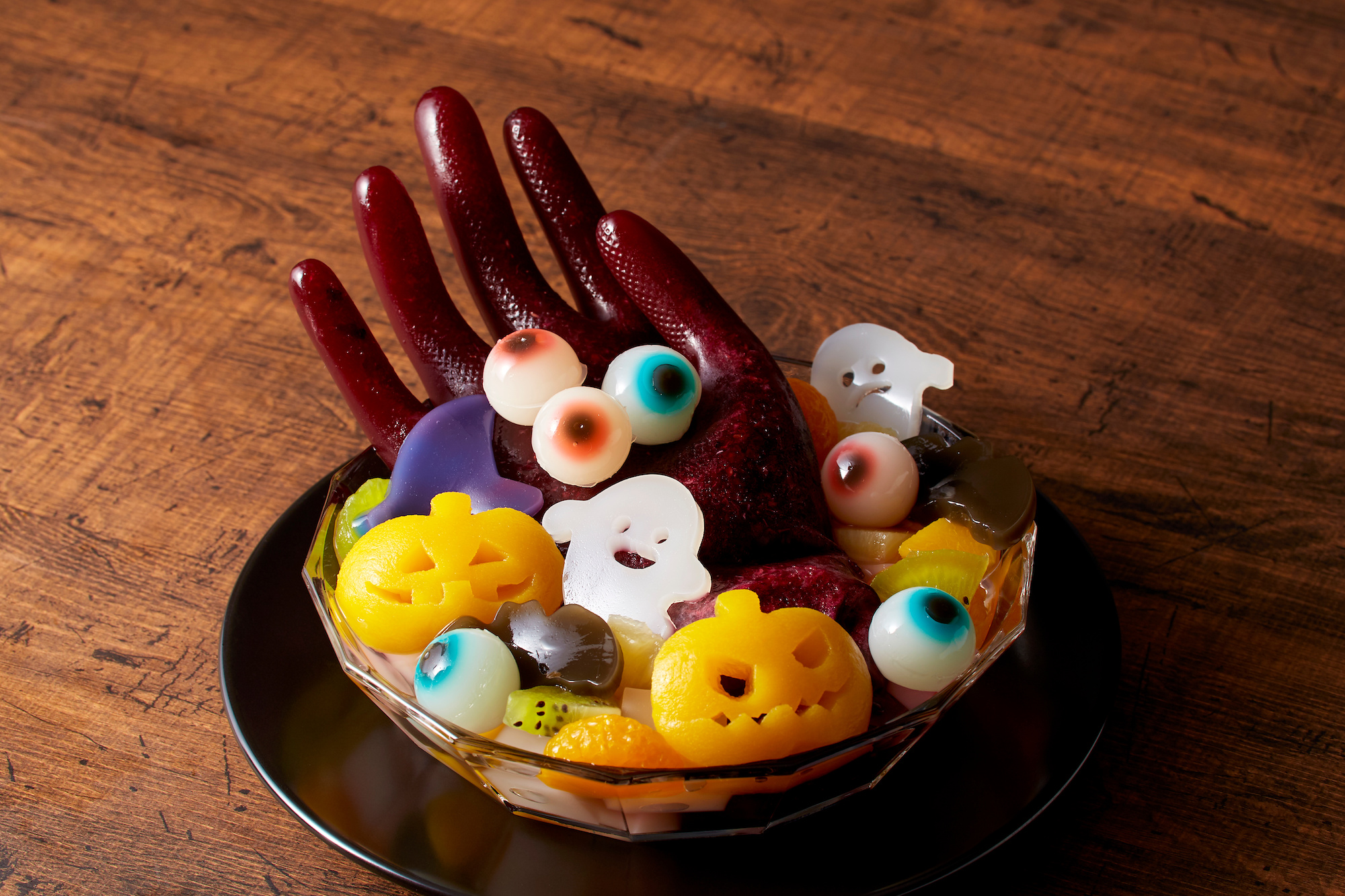 4. Eishand hinzufügen: Kurz vor dem Servieren die gefrorene “Hand” aus dem Handschuh lösen und in die Bowle legen. Sie wird schmelzen und dabei die Bowle kühlen, während sie gleichzeitig für einen gruseligen Effekt sorgt.