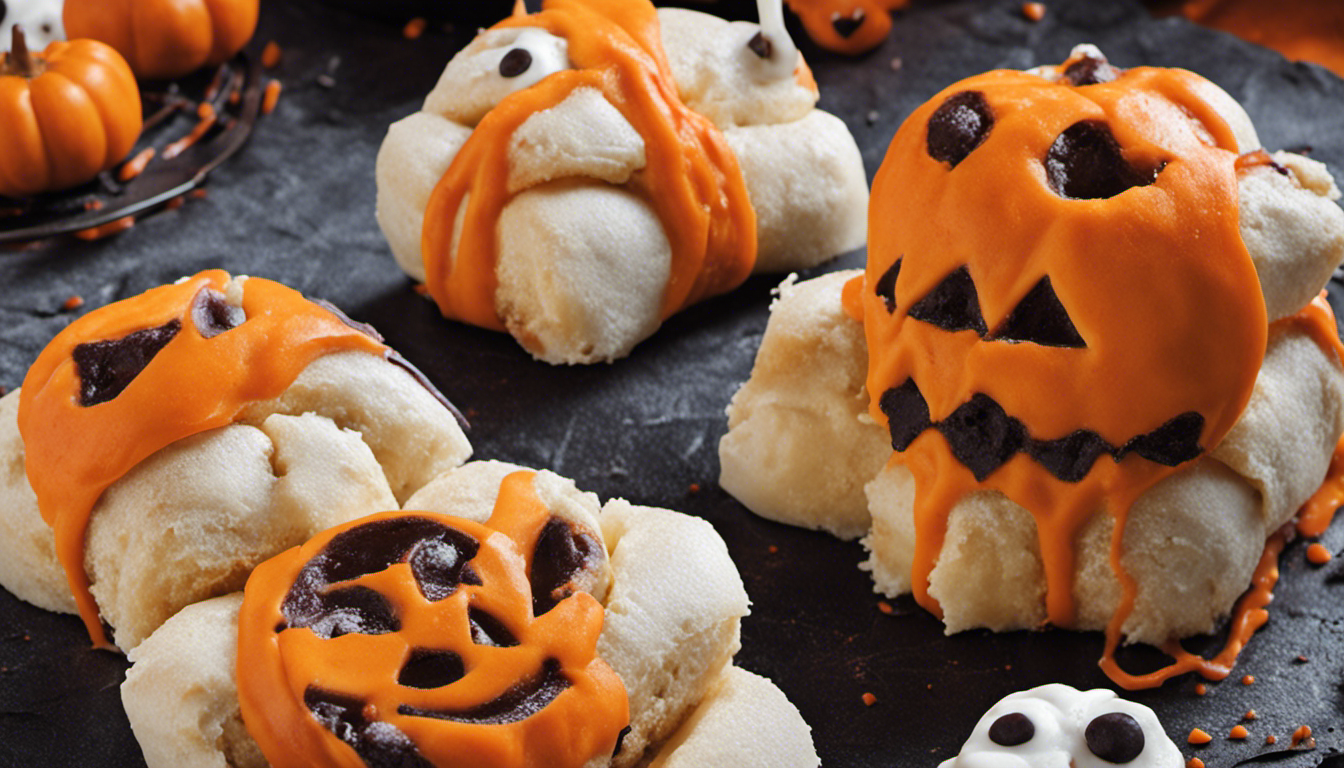 Halloween-Brötchen mit Kürbis und Geistergesicht