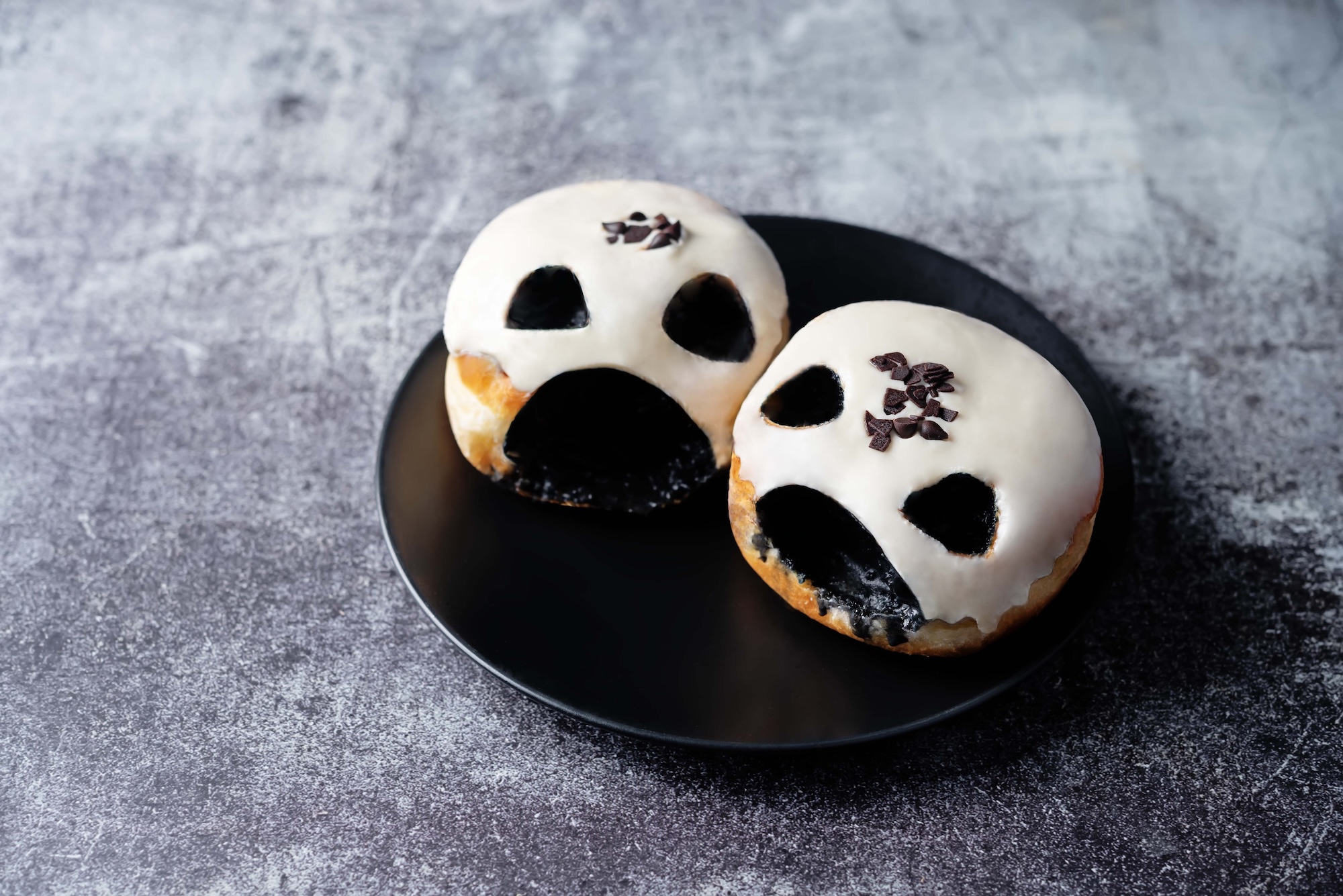 - Donut mit schwarzer Lebensmittelfarbe bemalt