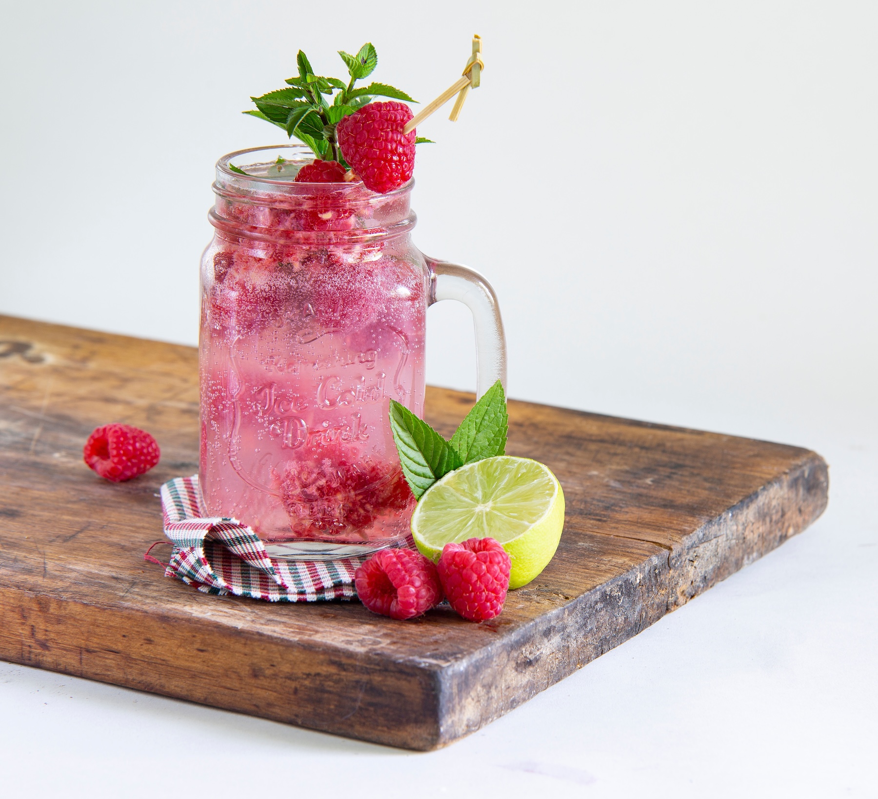 - Mischen: Den Himbeersirup mit Zitronensaft und Mineralwasser auffüllen.