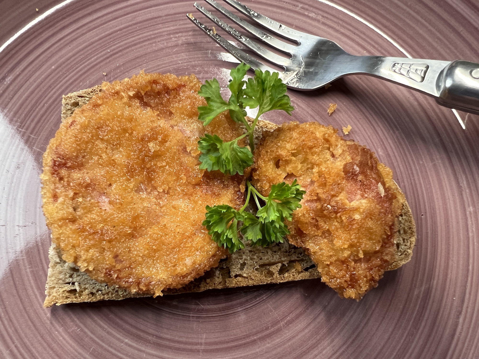 In Scheiben geschnitten und paniert, erhält die Jagdwurst eine knusprige Hülle, die beim Braten eine herrlich goldene Farbe annimmt.