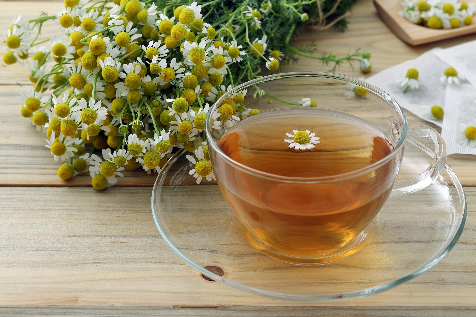 - Tee: Trockne die Blüten und verwende sie für die Zubereitung eines beruhigenden Tees. Kamillentee kann bei Schlafstörungen, Verdauungsproblemen und zur Beruhigung des Nervensystems helfen.