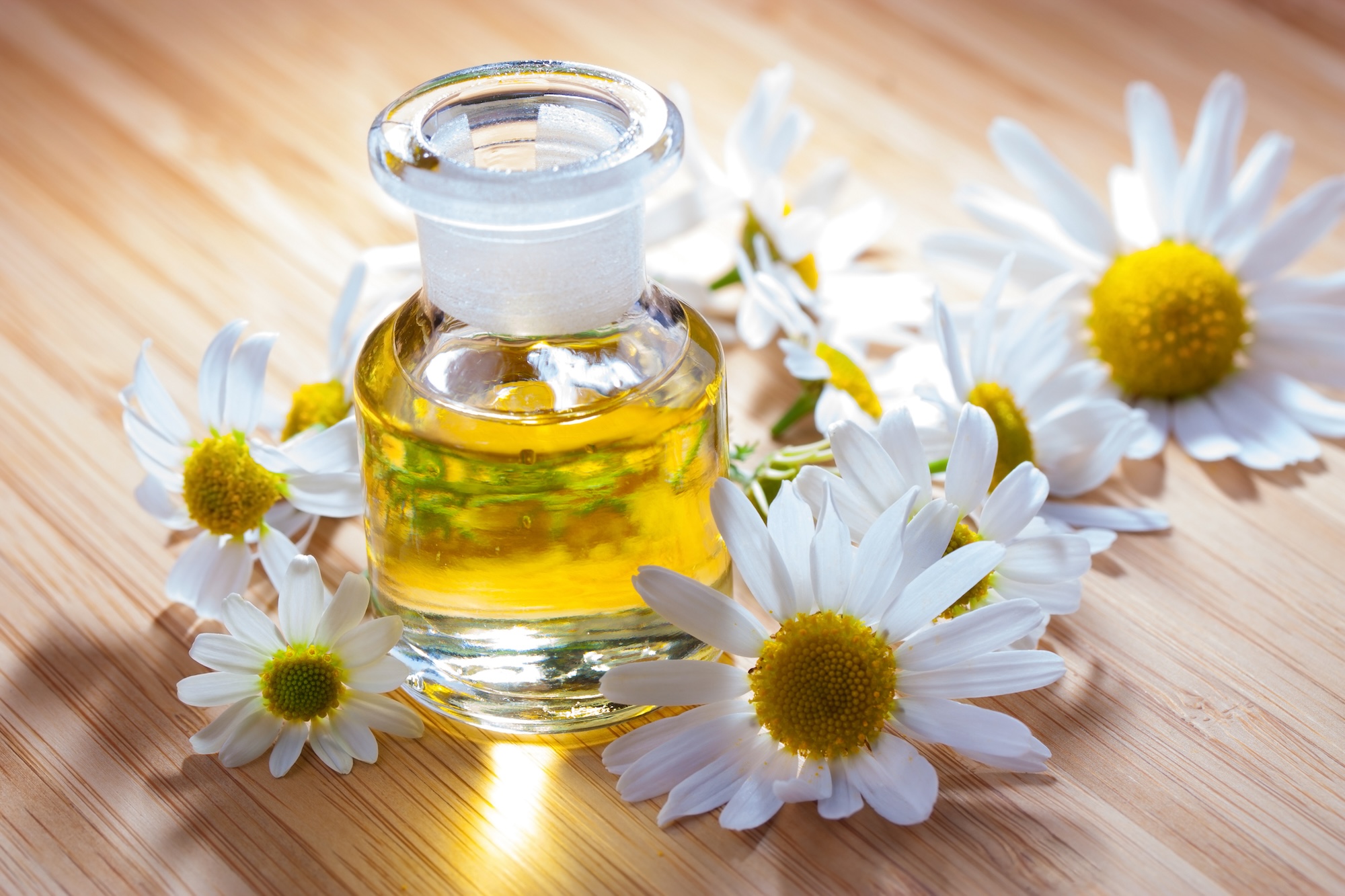 Ätherisches Öl: Ätherisches Kamillenöl für Aromatherapie und Hautpflege verwenden.