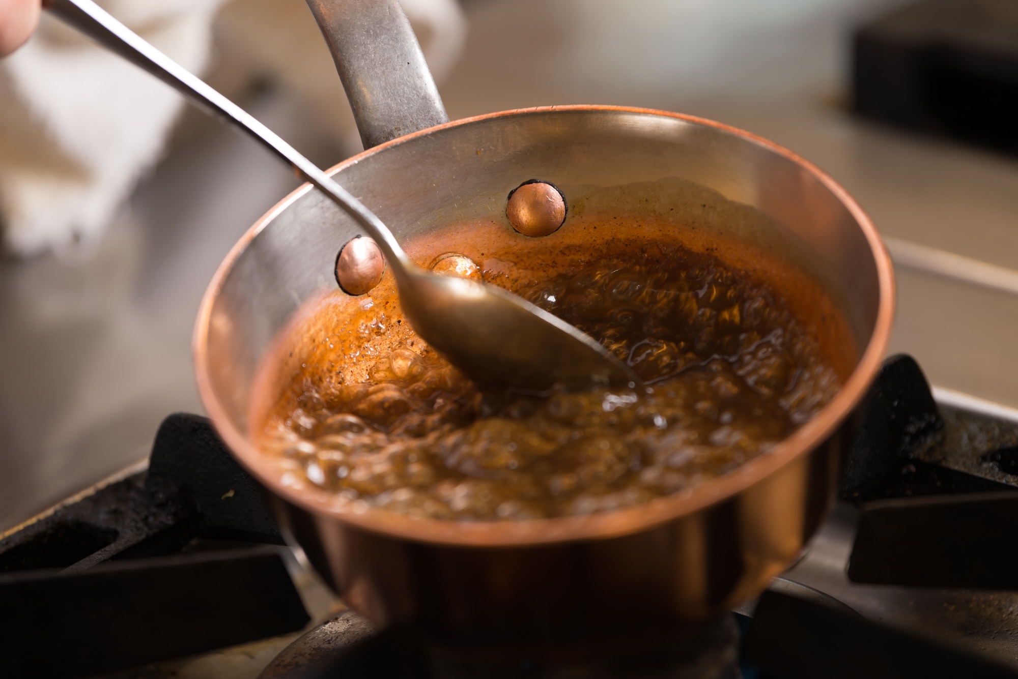 Beim Hinzufügen von Sahne oder Butter kann es spritzen, weil der heiße Zucker stark reagiert. Deshalb sollten die Zutaten langsam und vorsichtig hinzugefügt werden.