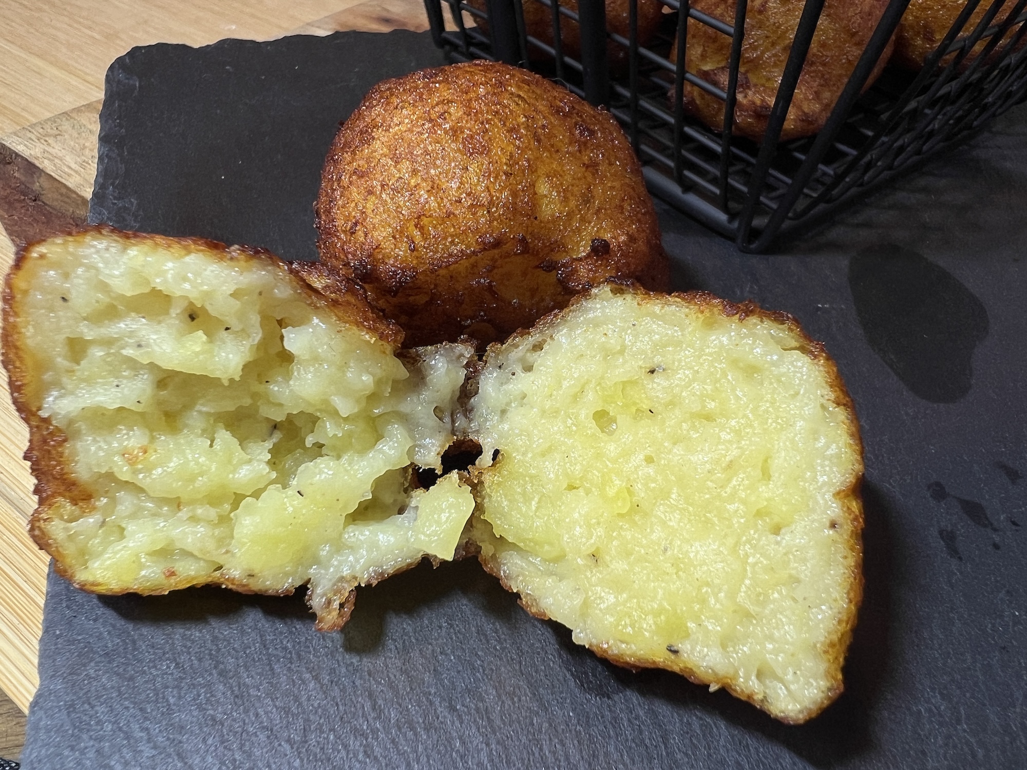 – Achte darauf, dass der Kartoffelbrei nicht zu flüssig ist, sonst halten die Bällchen beim Frittieren nicht zusammen. Bei Bedarf kannst du etwas mehr Mehl hinzufügen.