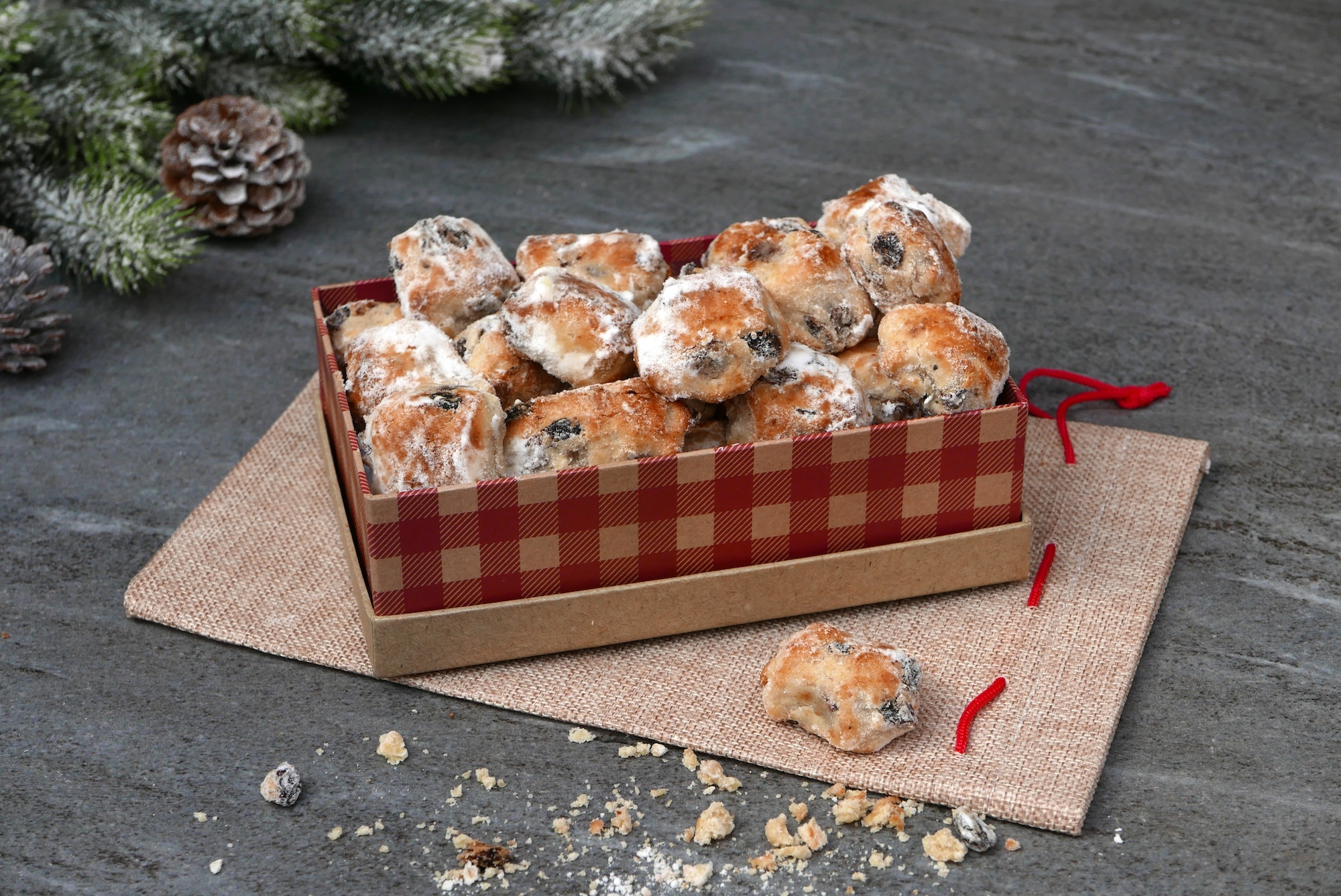 - Geschenkboxen: Legen Sie die Mini Stollen in dekorative Geschenkboxen und fügen Sie ein persönliches Weihnachtsrudiment hinzu.