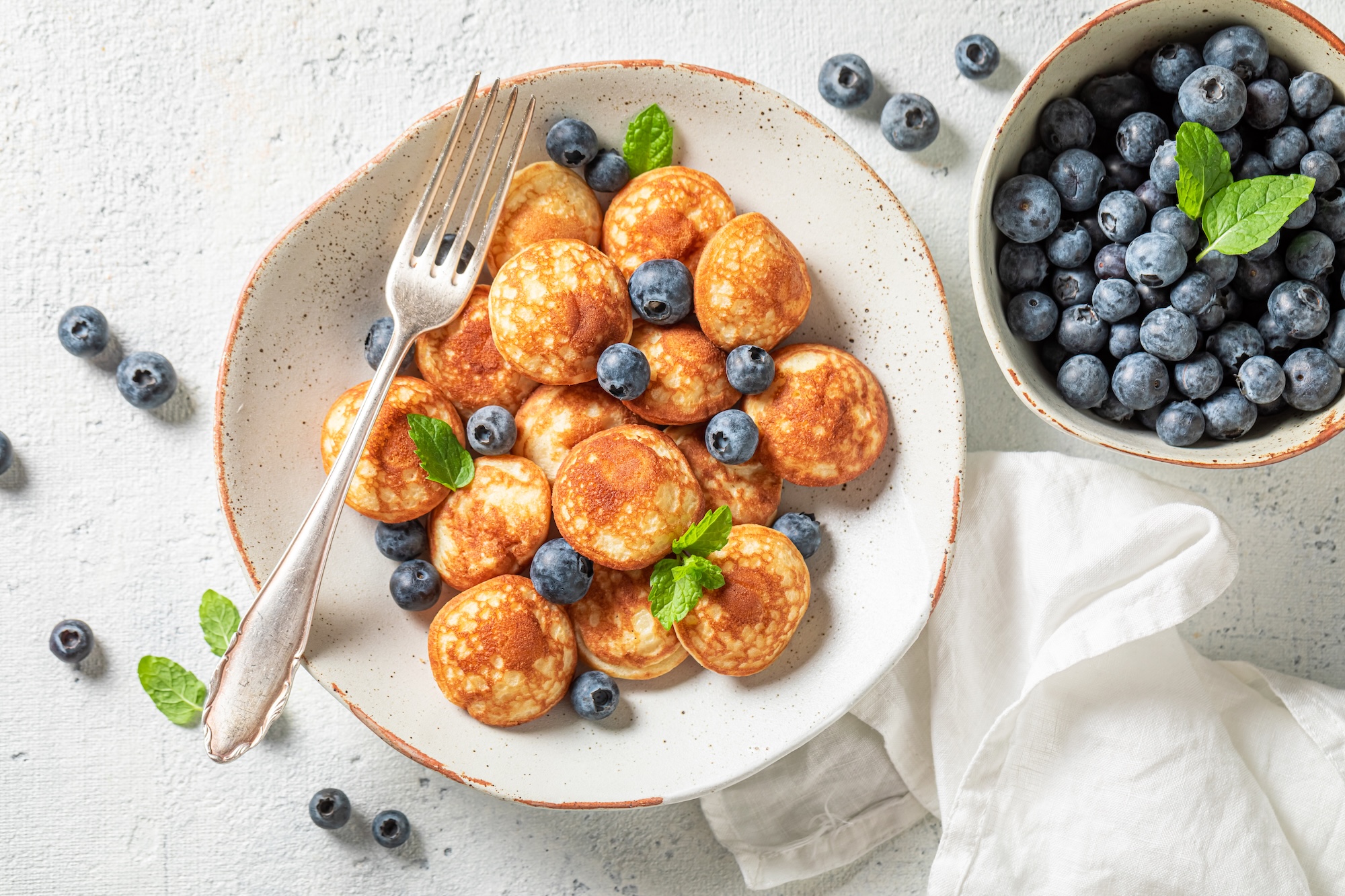- Mini-Pancakes mit Ahornsirup: Und frischen Beeren garniert.