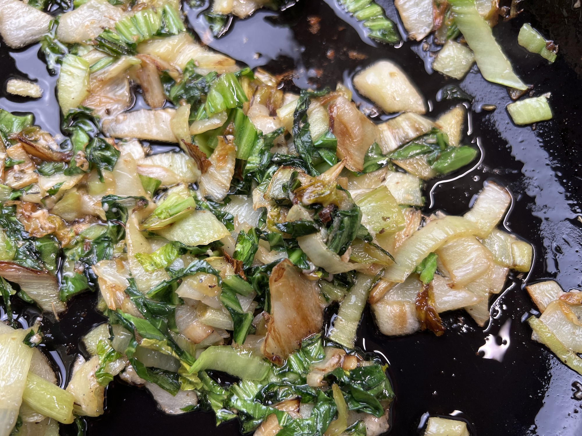 – Pak Choi vorbereiten und in Streifen schneiden.