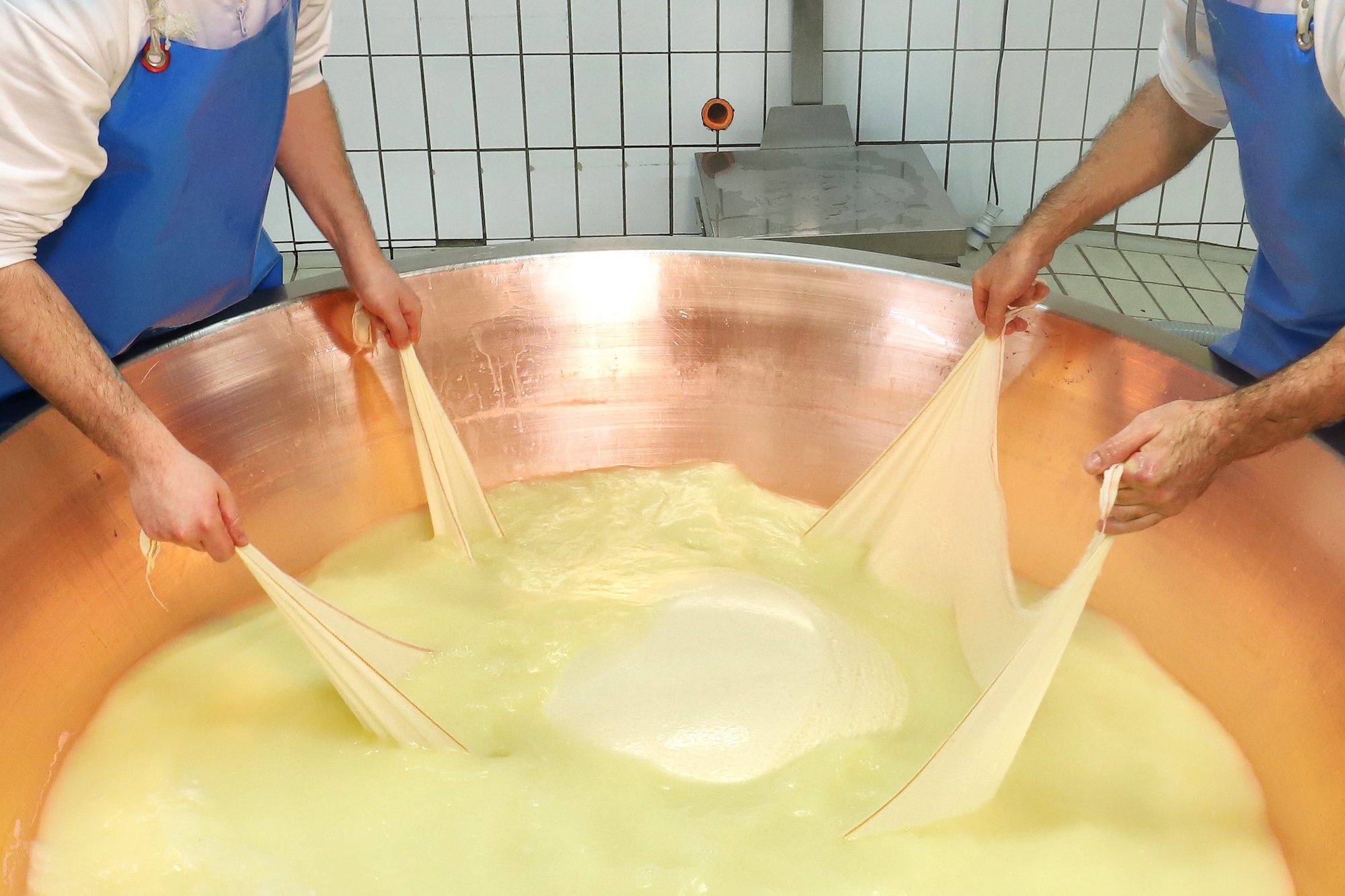 Die Rohmilch wird zwei Mal täglich, morgens und abends, gesammelt. Die Milch vom Vortag wird mit der frischen Milch vermischt, um eine homogene Mischung zu erzielen. Diese Mischung wird in große Kupferkesseln geleitet.