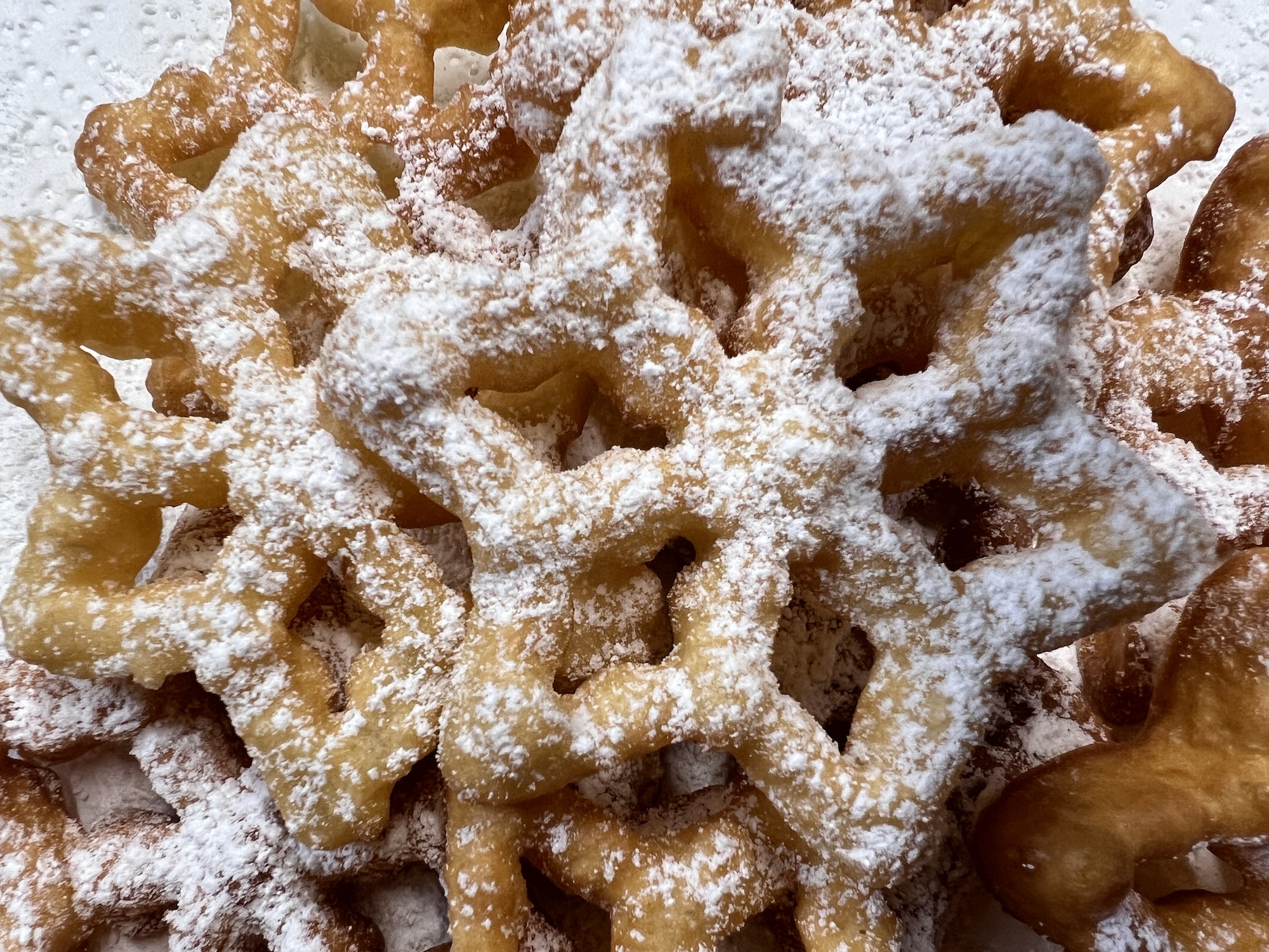 Dank des Waffeleisens frittieren sich die Rosettenwaffeln in ihrem eigenen Fett und bekommen dadurch ihre charakteristische goldbraune Farbe und knusprige Textur.