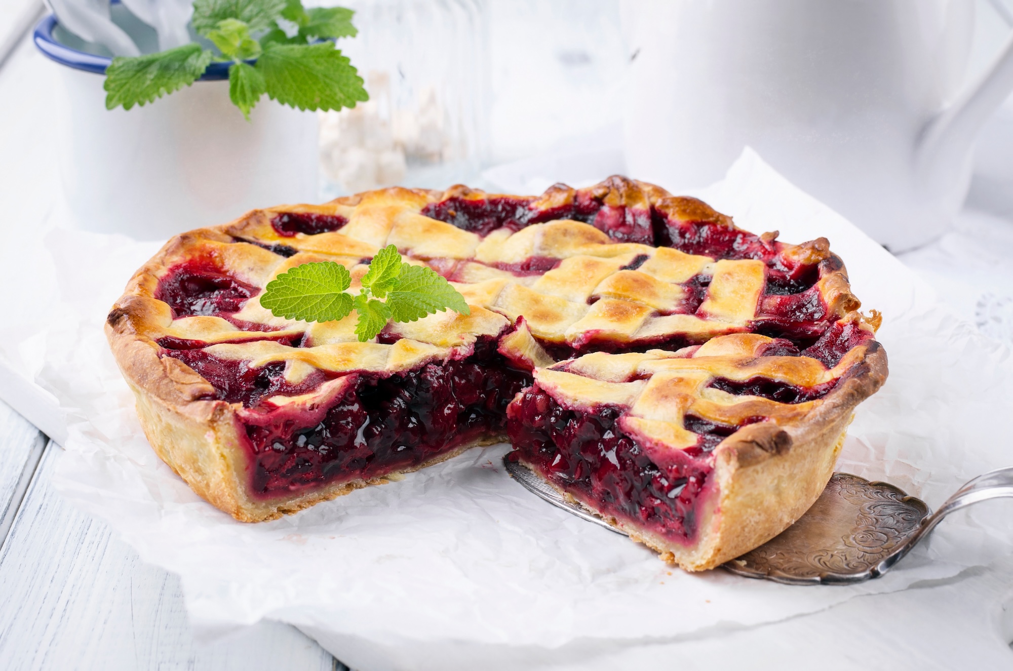 - Die Kirschfüllung vorsichtig auf dem Teig verteilen.