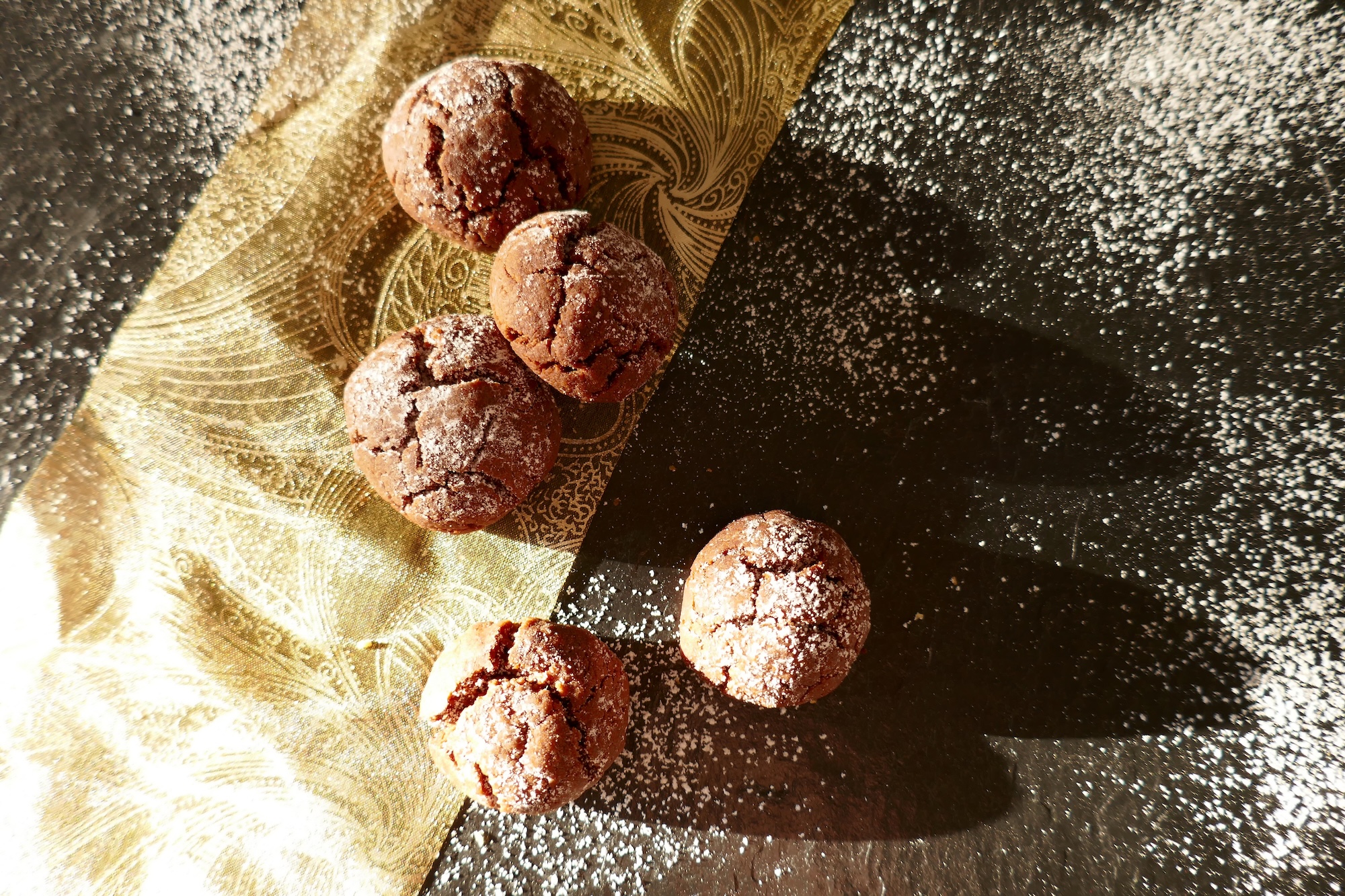 Rollen Sie den Teig vor dem Backen in Puderzucker, um beim Backen eine rissige, kraterähnliche Oberfläche zu erzeugen.