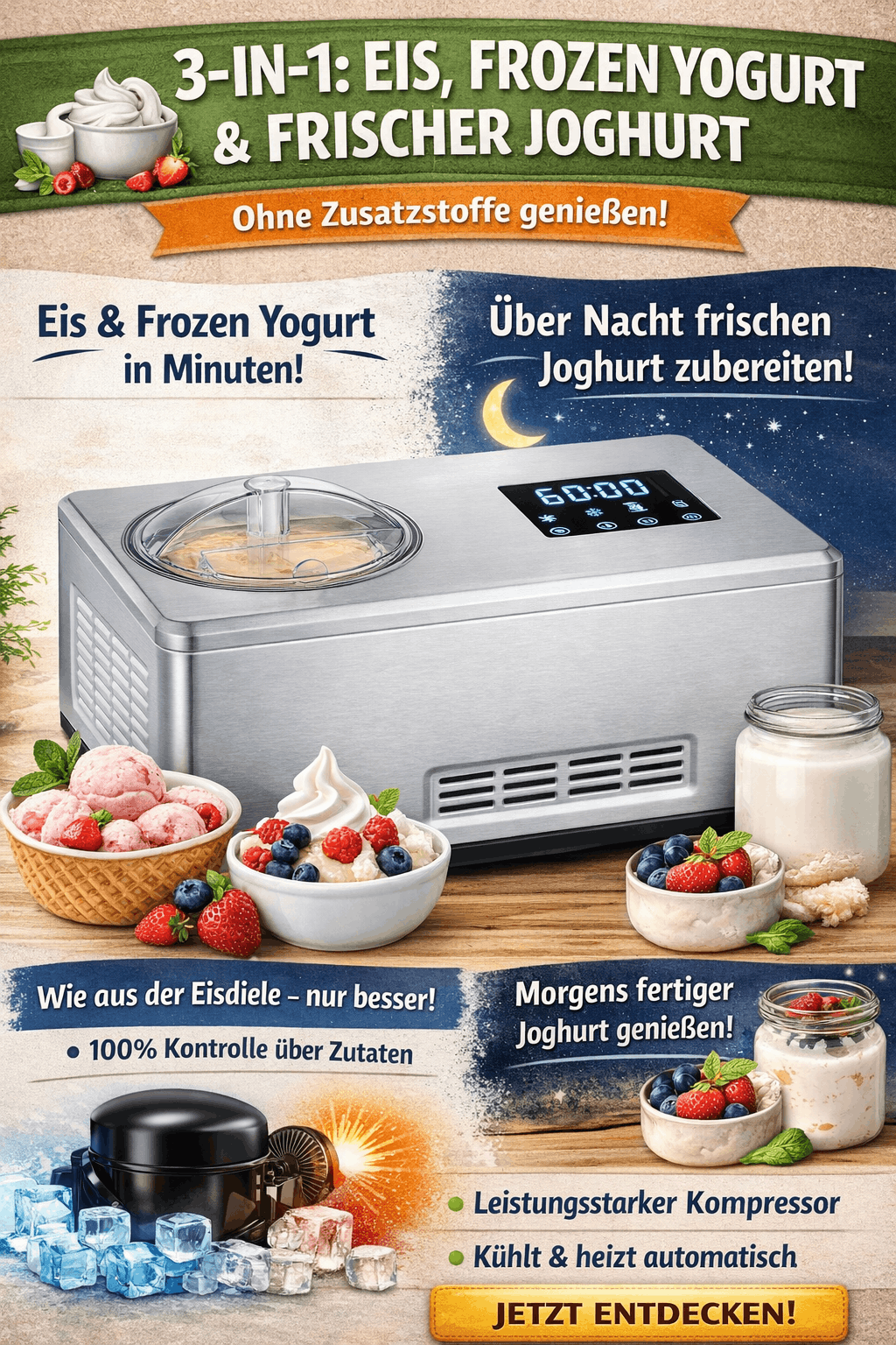- 2-in-1 Funktion (Eis + Joghurt)
