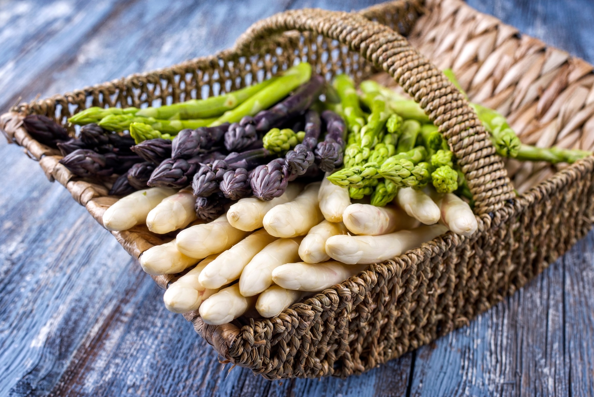 Es gibt hauptsächlich drei Arten von Spargel, die sich in Farbe und teilweise im Geschmack unterscheiden: weißer, grüner und violetter Spargel.