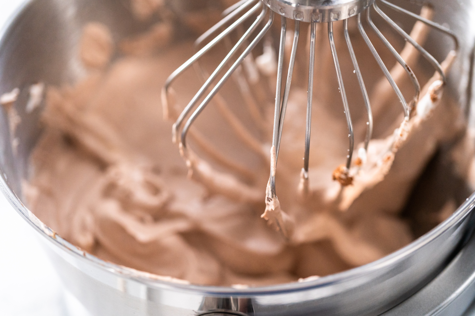 4. Stoppen Sie den Mixer und kratzen Sie die Seiten nach Bedarf ab, um sicherzustellen, dass alle Zutaten gut vermengt sind.