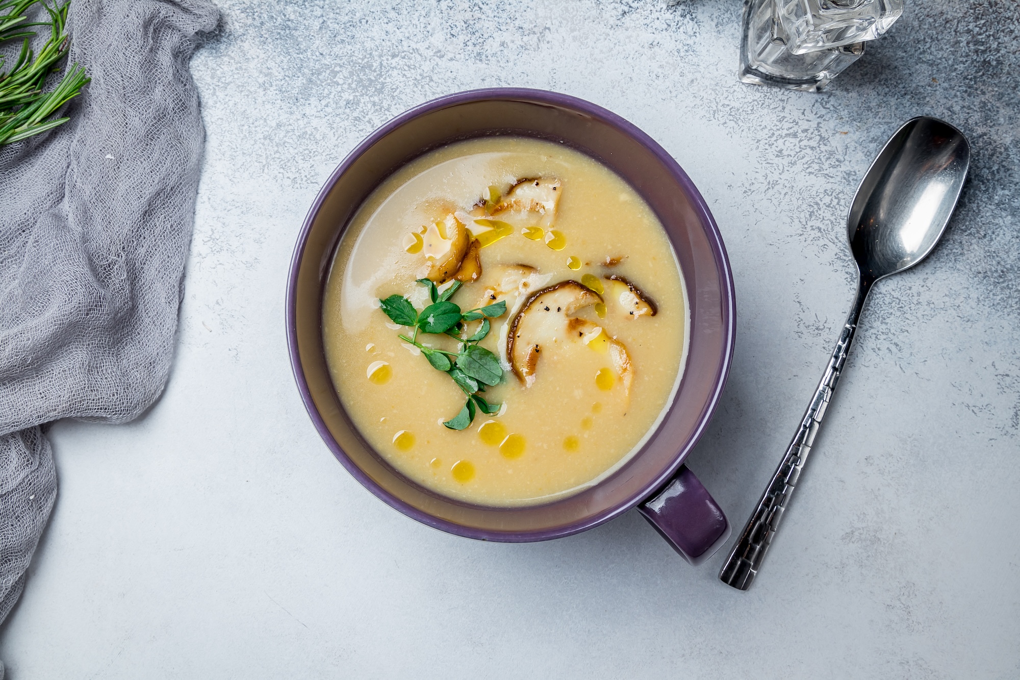 - Variieren Sie die Kräuter nach Ihrem Geschmack; zum Beispiel passen auch Estragon oder Dill hervorragend zu Pilzsuppen.