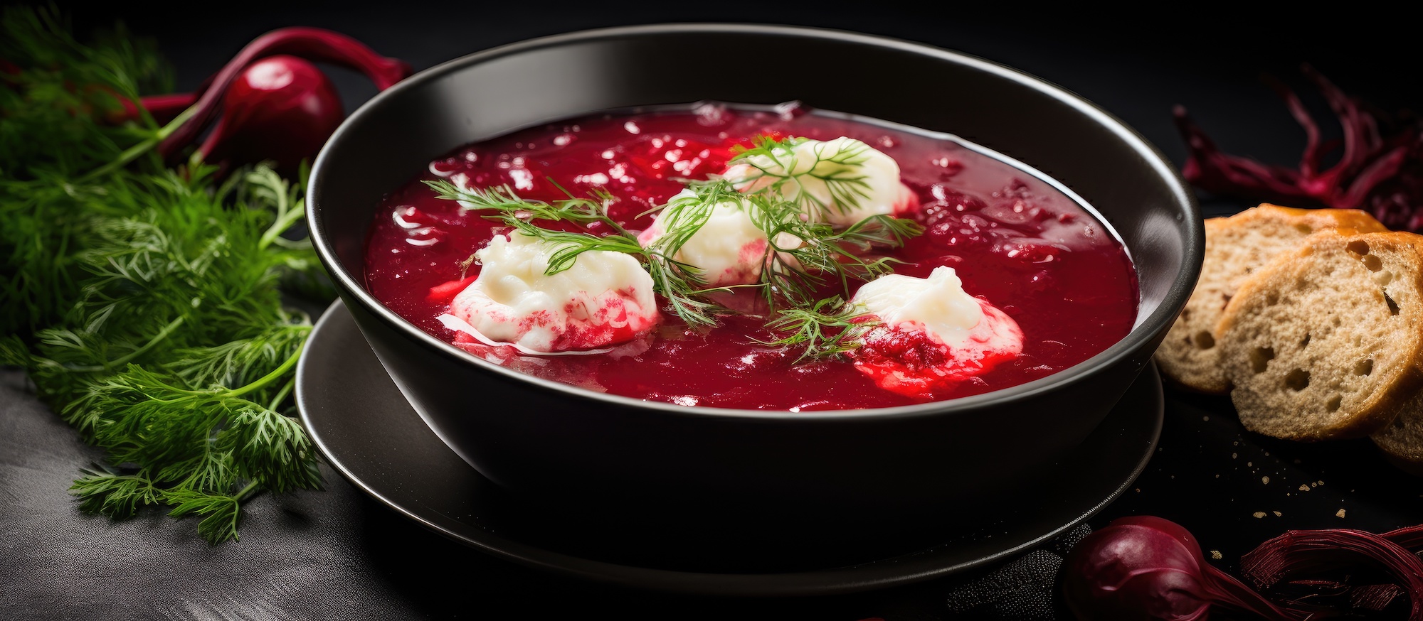 7. Rote-Bete-Suppe mit Ziegenkäse und Dill: Eine farbenfrohe Suppe aus Roter Bete, garniert mit cremigem Ziegenkäse und frischem Dill.
