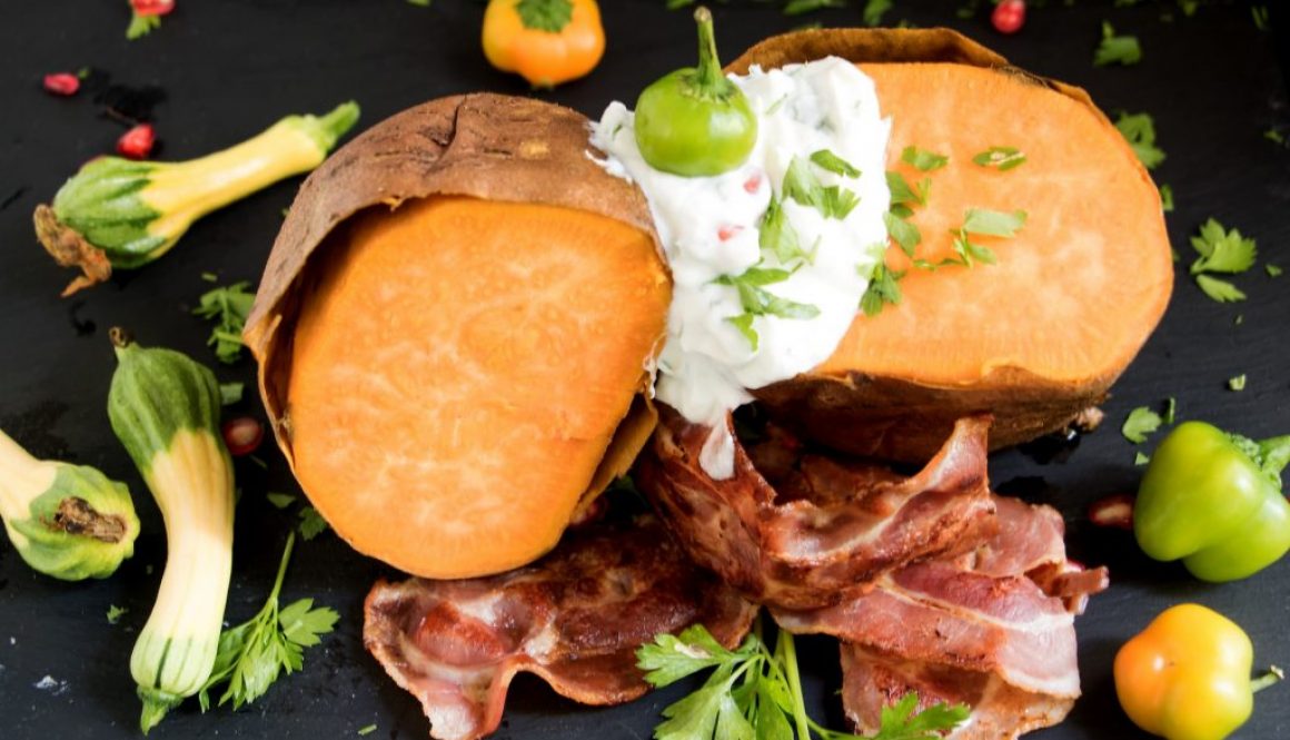 Gebackene Süßkartoffeln mit Gartenkräuter-Füllung