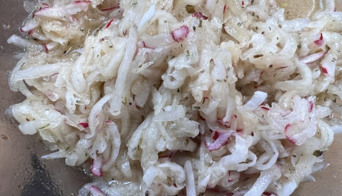 Rettich-Radieschen-Salat Rezept Zutaten: – 1 großer Rettich – 1 Bund Radieschen – 1 kleine rote Zwiebel – 1/4 Tasse gehackte frische Petersilie – Saft von 1 Zitrone – 2 Esslöffel Olivenöl extra vergine – 1 Teelöffel Honig oder Ahornsirup (optional) – Salz und frisch gemahlener schwarzer Pfeffer nach Geschmack – Optional: 2 Esslöffel geröstete Sonnenblumenkerne […]
