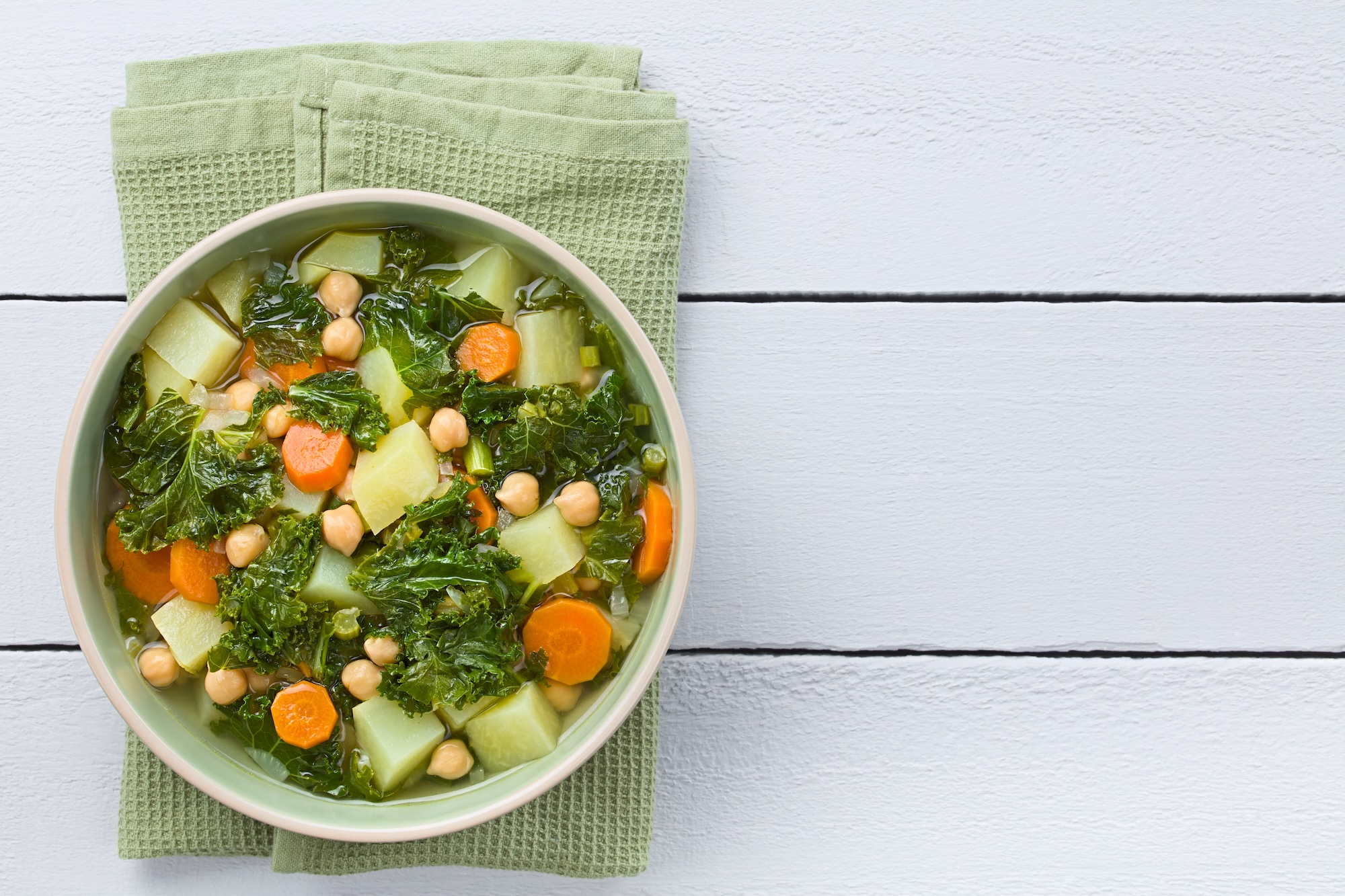 Vegane Gemüsesuppe aus Grünkohl, Kichererbsen, Karotten, Sellerie, Zwiebeln und Kartoffeln: Ein Genuss für Körper und Seele